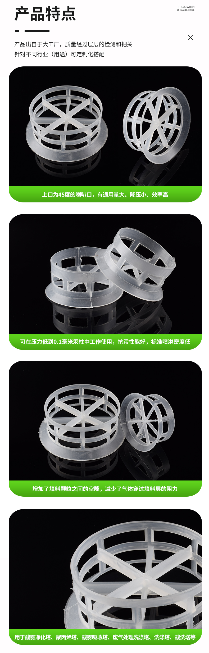 名稱 | 規(guī)格 | 直徑x高度x壁厚 | 比表面積 | 空隙率 | 堆重 | 堆積個數(shù) | 干填料因子 |