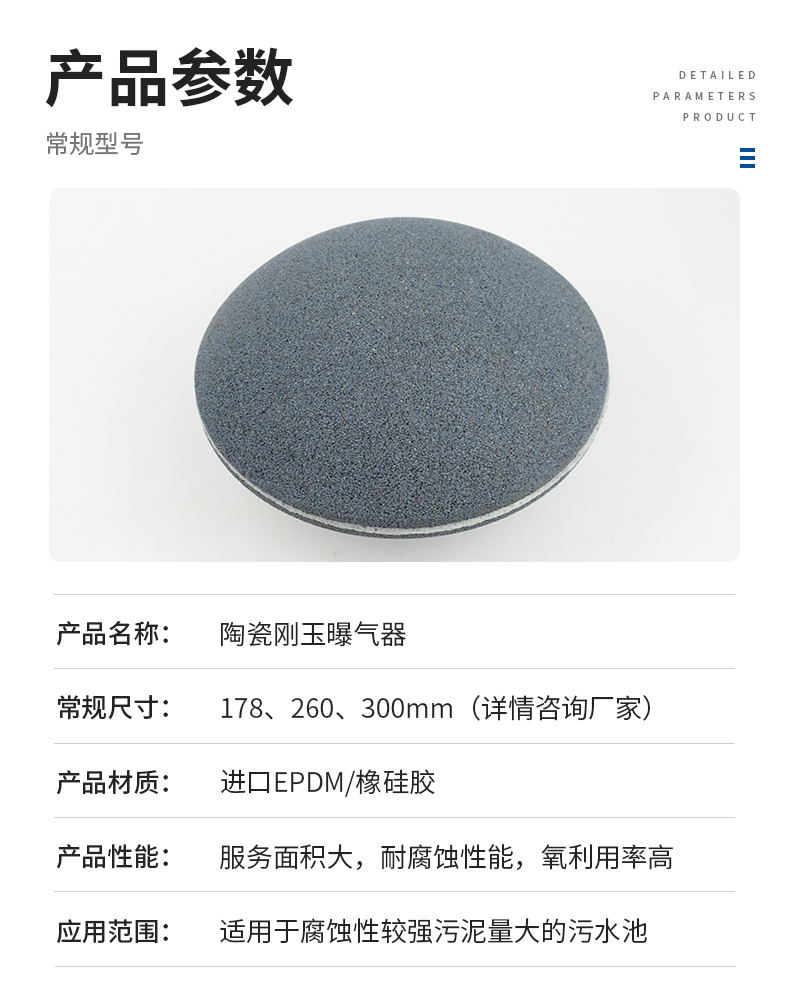 陶瓷剛玉曝氣器是以棕剛玉沙為主要原料,經壓制成型、高溫燒結的一種鐘罩型高效節能空氣擴散裝置,該類型曝氣器硬度更大,化學性能十分穩定,可適用于各種生活污水和工業廢水生化處理、水產養殖等增氧系統。分全剛玉和半剛玉兩個類型。它與其它類型曝氣器相比,運行穩定、耐老化、防腐蝕、適用于連續曝氣池運行等特點給該產品營造了較為理想的市場空間。