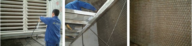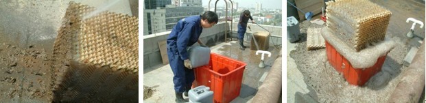 由于冷卻塔長年暴露在外,風(fēng)扇的吸附力很強,使大量的泥沙、污物進入塔內(nèi),長時間運行會使冷卻塔慢慢的降低散熱能力,布水器出水孔很容易堵塞,泥沙及污垢也很容易進入冷卻水系統(tǒng)中去,將直接影響冷卻水系統(tǒng)的正常制冷。為了防止上述情況發(fā)生,將損失將到最低,必須對冷卻塔進行定期清洗。